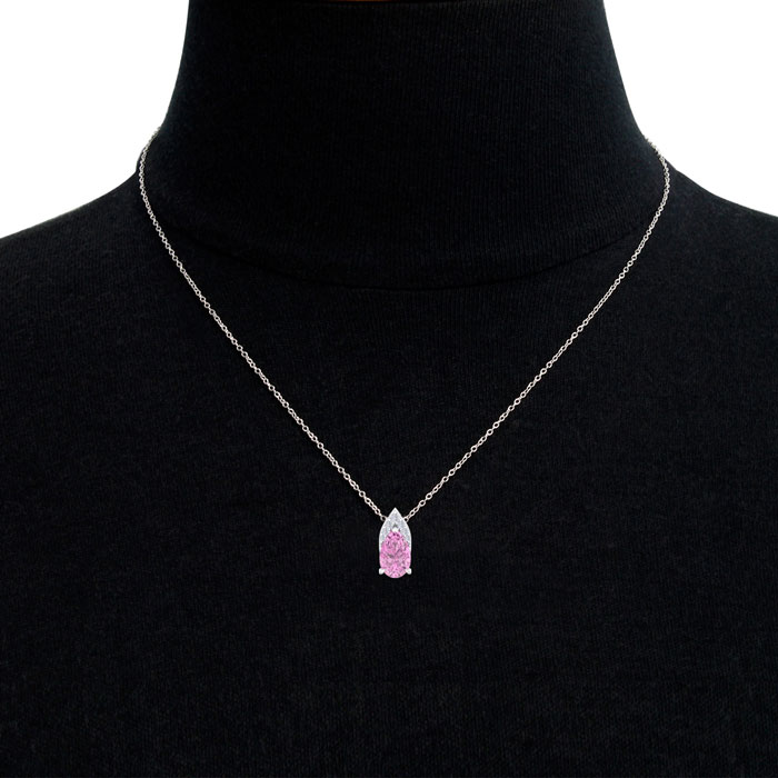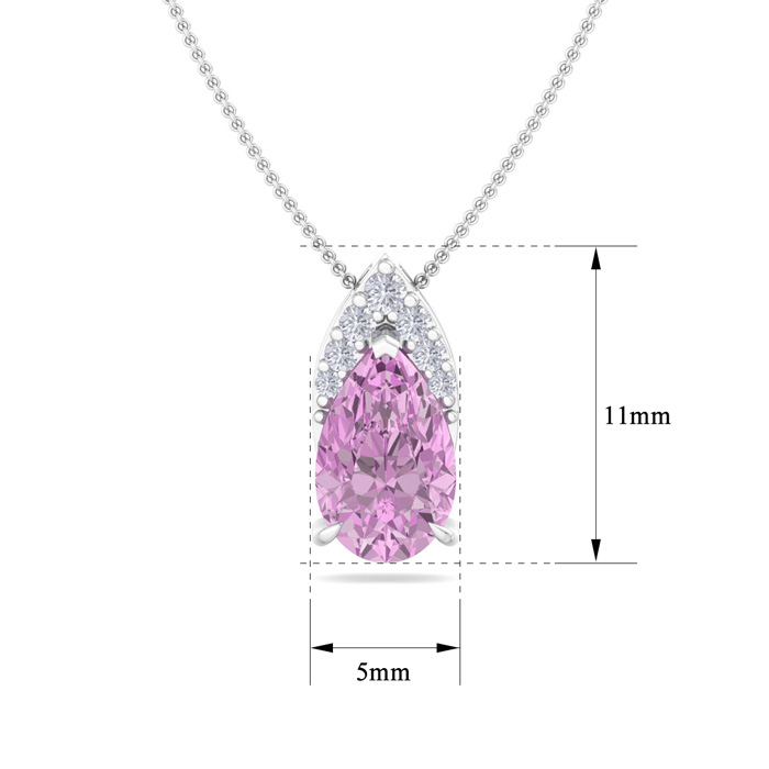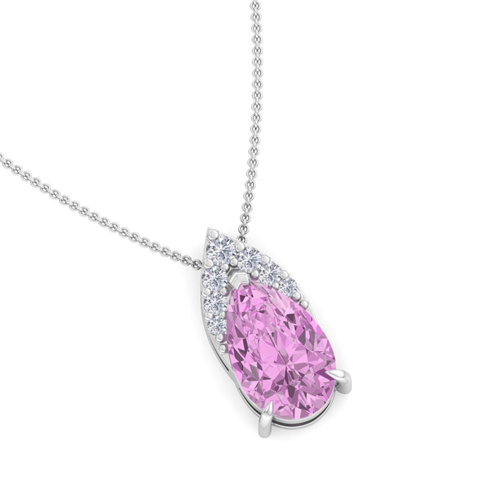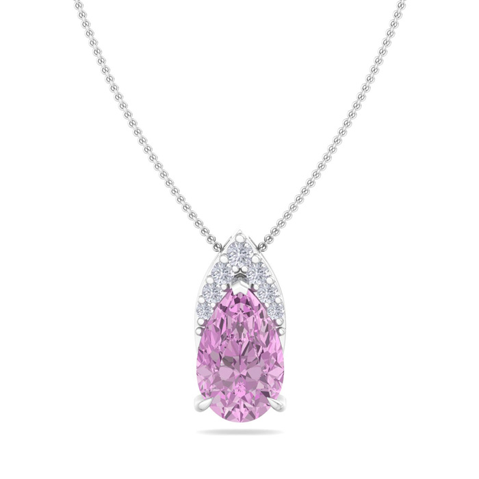 7/8 Carat Pear Shape Pink Topaz and Diamond Necklace In 14 Karat White Gold, 18 Inches