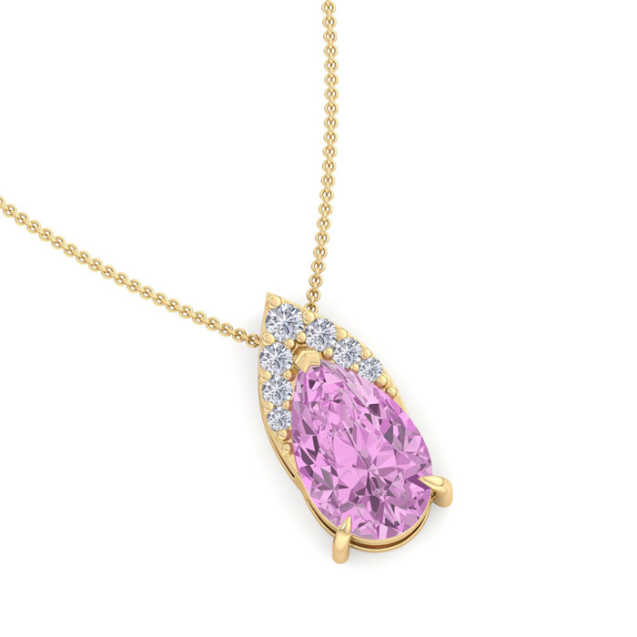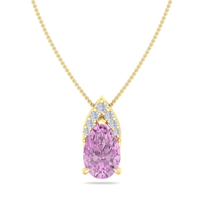 7/8 Carat Pear Shape Pink Topaz and Diamond Necklace In 14 Karat Yellow Gold, 18 Inches