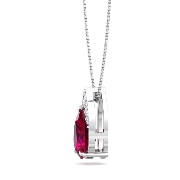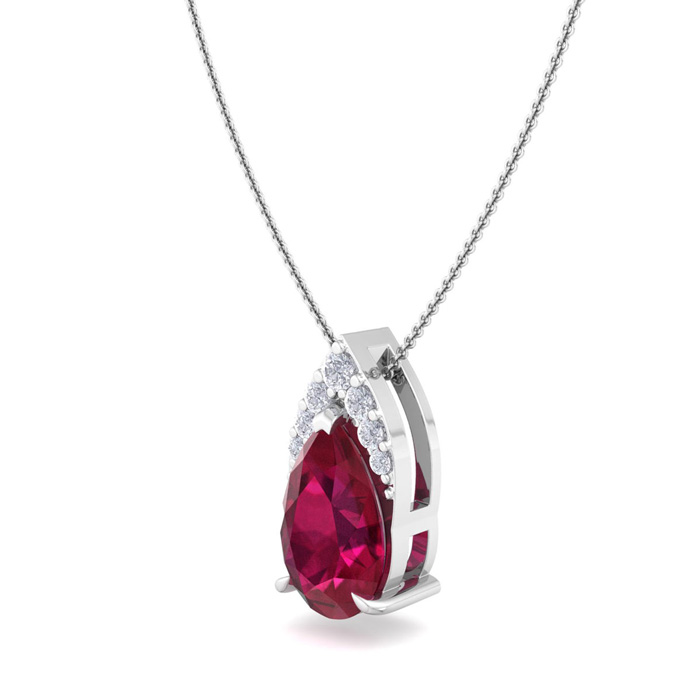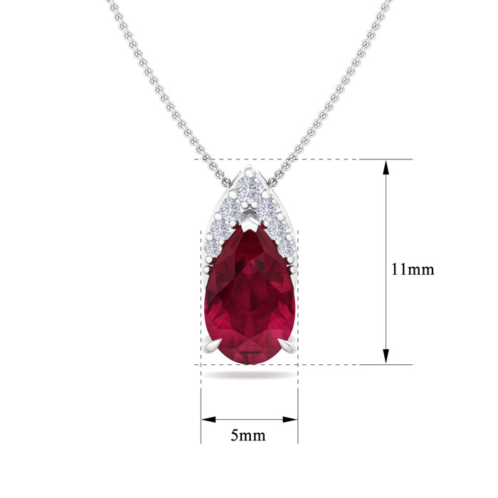 7/8 Carat Pear Shape Ruby and Diamond Necklace In 14 Karat White Gold, 18 Inches