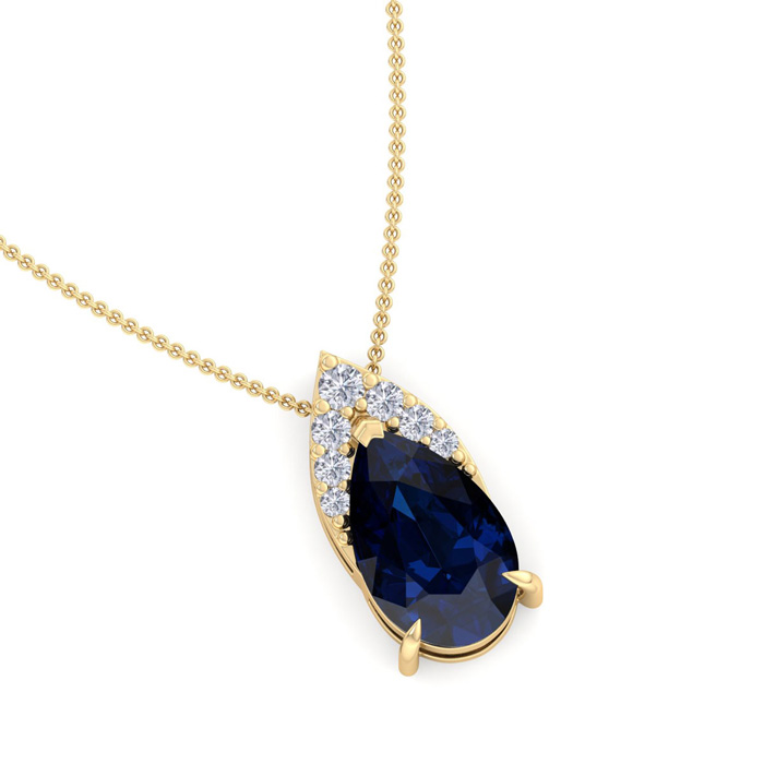 7/8 Carat Pear Shape Sapphire and Diamond Necklace In 14 Karat Yellow Gold, 18 Inches