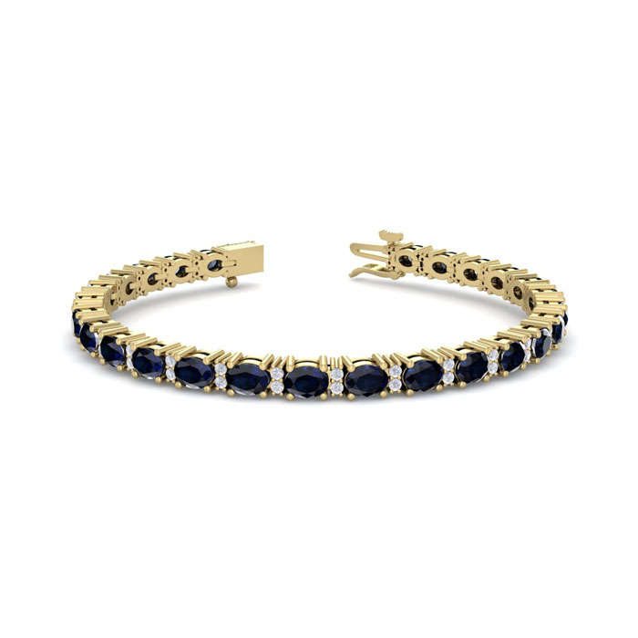 7 Carat Oval Shape Sapphire and Diamond Bracelet In 14 Karat Yellow Gold, 7 Inches
