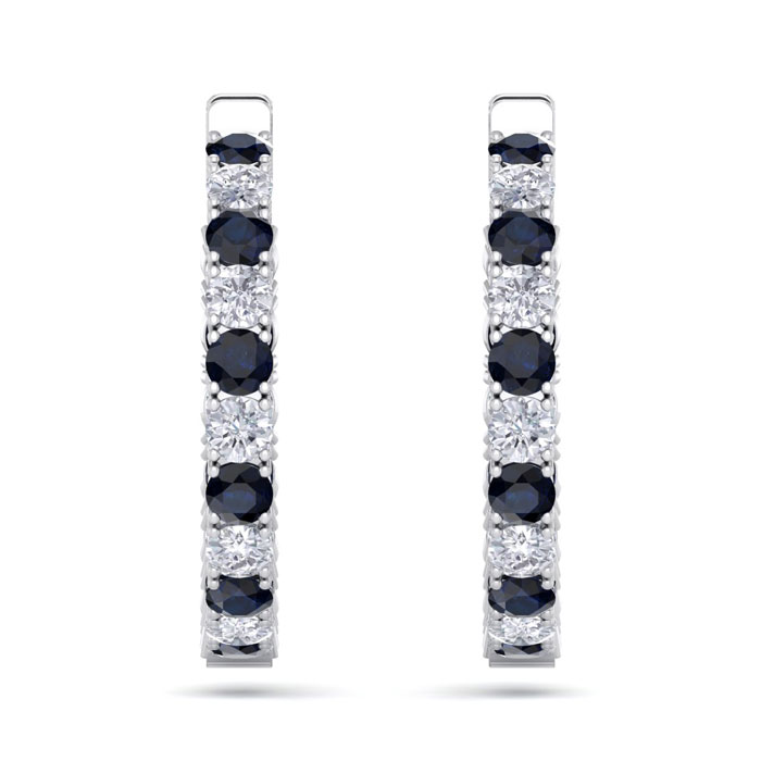 7 Carat Sapphire and Diamond Hoop Earrings In 14 Karat White Gold, 1 1/4 Inch