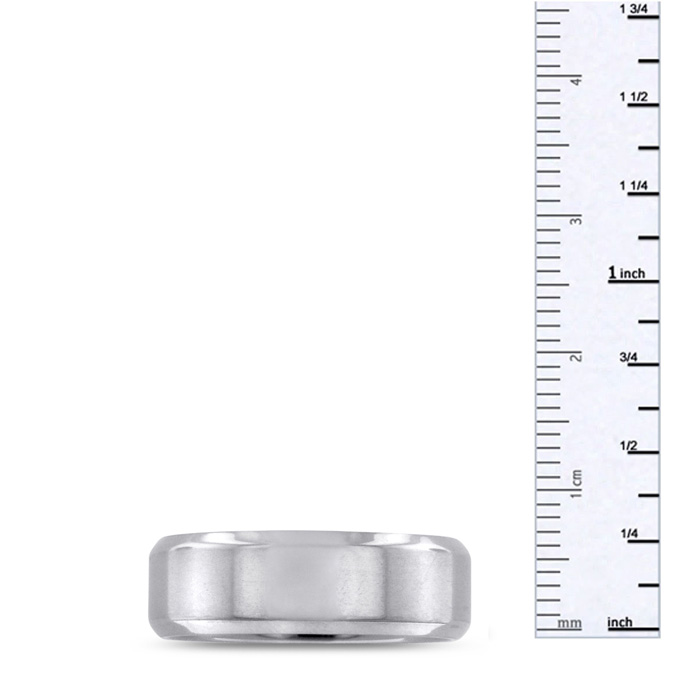 This wedding band for him is crafted of titanium, a metal prized for its unique strength and light weight. The 7mm band features a beveled edge and matte finish.