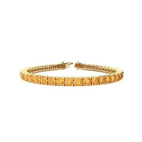 This classic gemstone bracelet features shimmering citrine gemstones. The 6 inch bracelet contains 39 gemstones at 7.80 carats. The 6.5 inch bracelet contains 42 gemstones at 8.60 carats. The 7 inch bracelet contains 45 gemstones at 9.20 carats. The 7.5 inch bracelet contains 49 gemstones at 9.80 carats. The 8 inch bracelet contains 53 gemstones at 10.60 carats. The 8.5 inch bracelet contains 56 gemstones at 11.20 carats. The 9 inch bracelet contains 59 gemstones at 11.80 carats. This bracelet is approximately 3.8mm wide and is crafted in 14 karat yellow gold. This bracelet has a secure, box with tongue and safety clasp.
