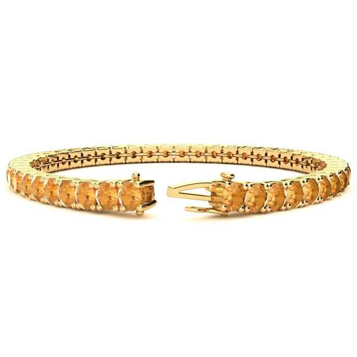 This classic gemstone bracelet features shimmering citrine gemstones. The 6 inch bracelet contains 39 gemstones at 7.80 carats. The 6.5 inch bracelet contains 42 gemstones at 8.60 carats. The 7 inch bracelet contains 45 gemstones at 9.20 carats. The 7.5 inch bracelet contains 49 gemstones at 9.80 carats. The 8 inch bracelet contains 53 gemstones at 10.60 carats. The 8.5 inch bracelet contains 56 gemstones at 11.20 carats. The 9 inch bracelet contains 59 gemstones at 11.80 carats. This bracelet is approximately 3.8mm wide and is crafted in 14 karat yellow gold. This bracelet has a secure, box with tongue and safety clasp.