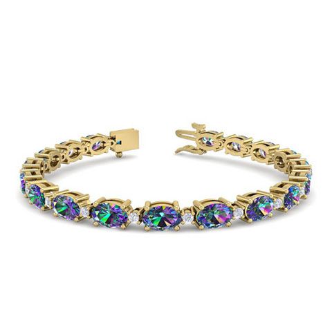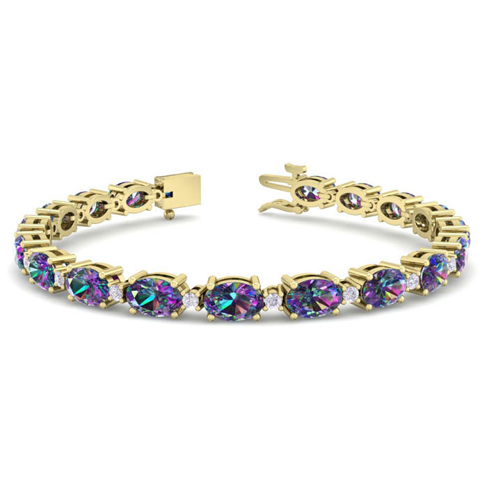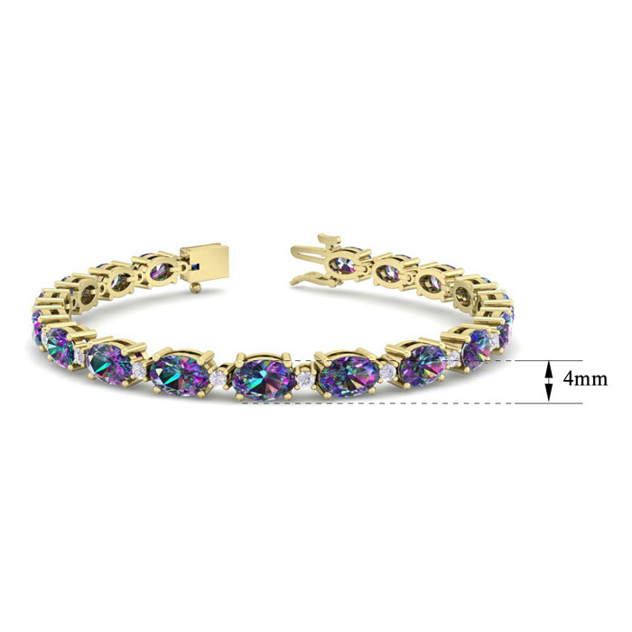 8 1/2 Carat Oval Shape Mystic Topaz and Diamond Bracelet In 14 Karat Yellow Gold, 7 Inches
