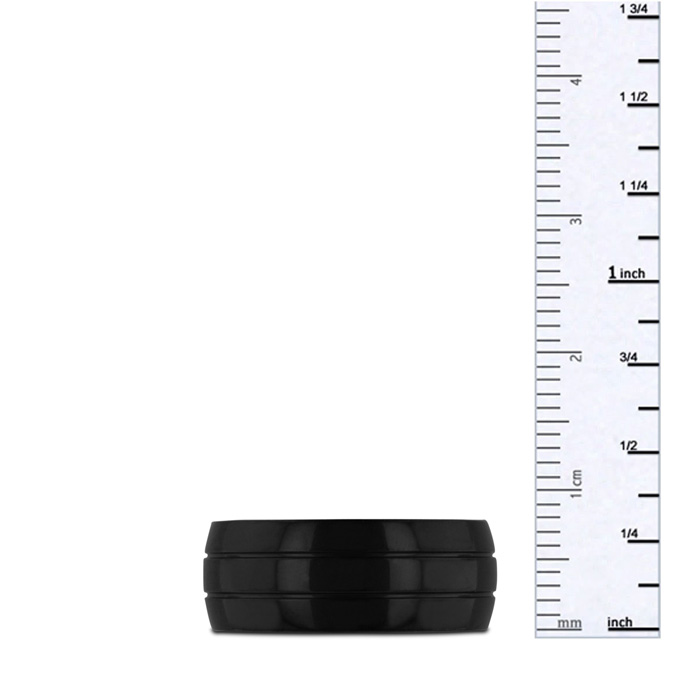 AN 8 mm High Polish men's wedding band in black. This authentic black titanium wedding band has proven to be one of our best sellers since it's inception.
