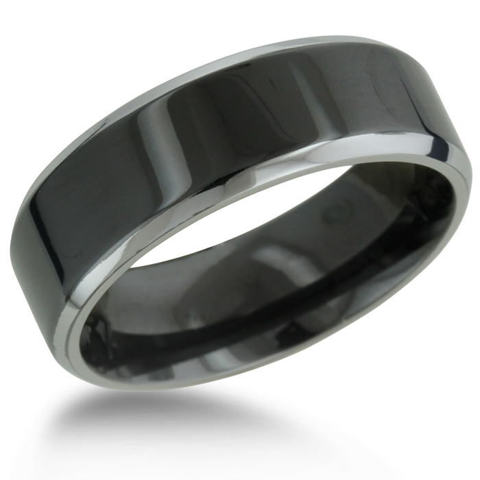 This ring is great! It looks just as shown and my fiancé loves it. The black and the silver look really chic and stylish together but very masculine at the same time and the fit was perfect. My only compliant is that is shows finger prints and smudges instantly! He will just have to clean/polish it more often than not. But we are both very happy with this purchase!:)--Kathrynrobin.