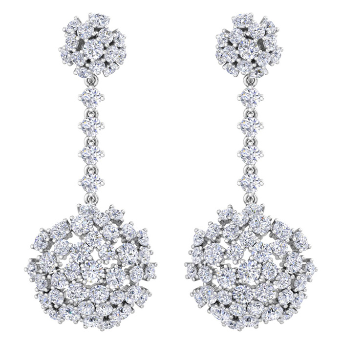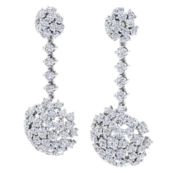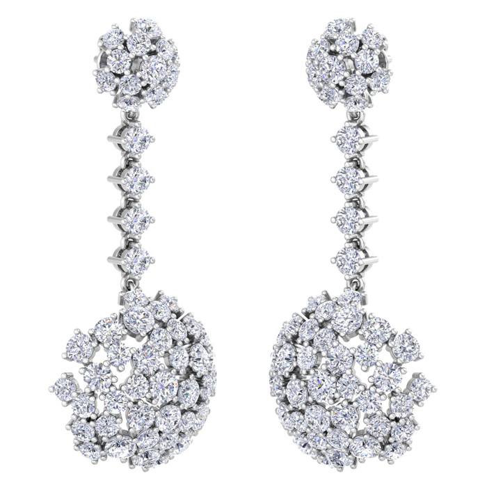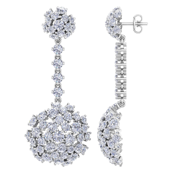 9 1/2 Carat Lab Grown Diamond Drop Earrings In 14 Karat White Gold, 2 Inches