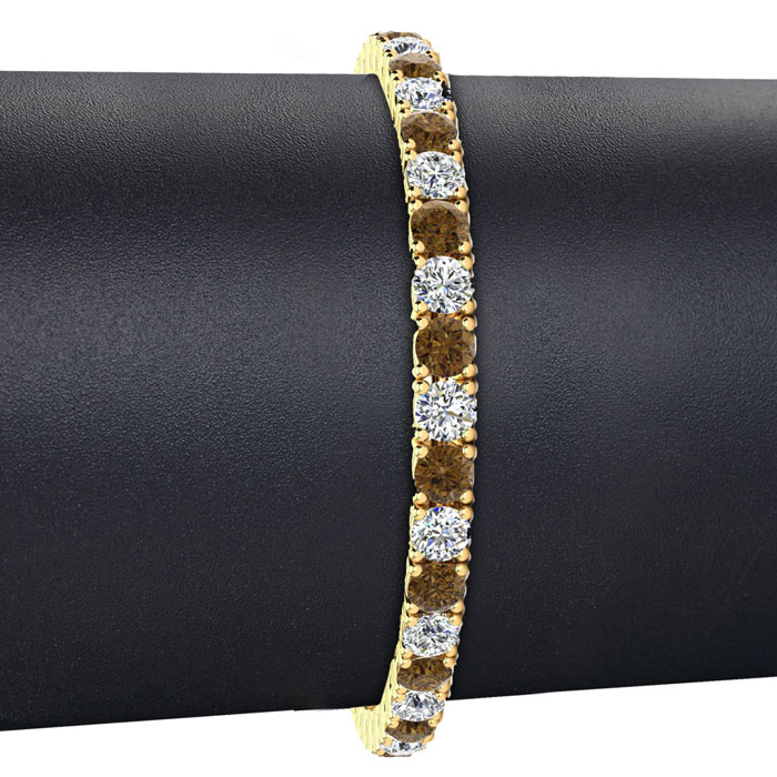 9 3/4 Carat Chocolate Bar Brown Champagne and White Diamond Mens Tennis Bracelet In 14 Karat Yellow Gold, 7 1/2 Inches