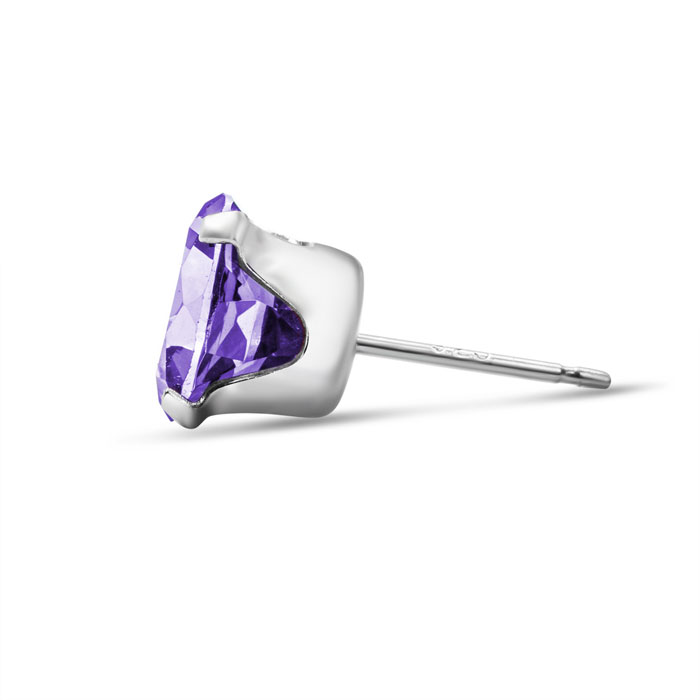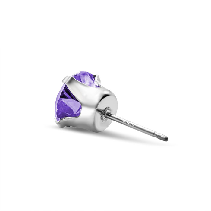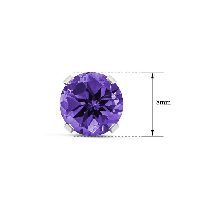 3 Carat Amethyst Earrings In Sterling Silver, 8MM