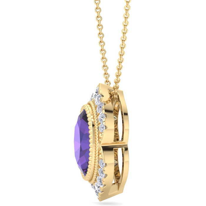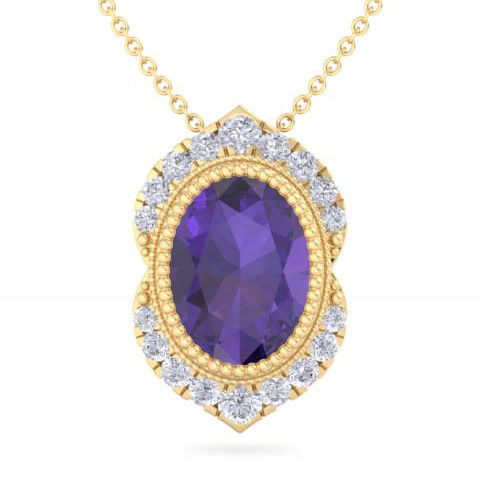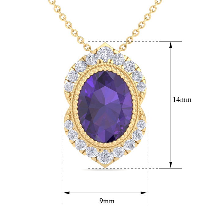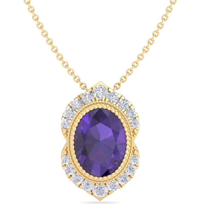 1 1/5 Carat Oval Shape Amethyst and Diamond Necklace In 14K Yellow Gold