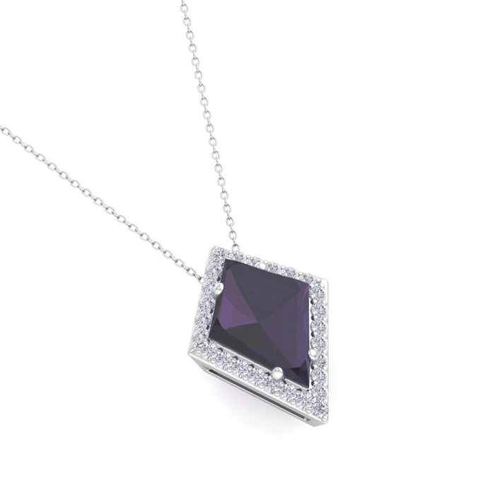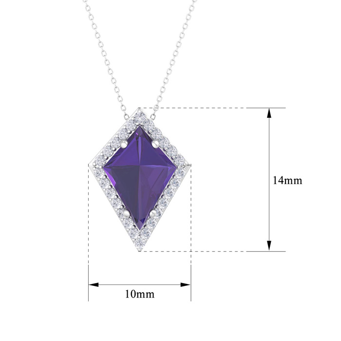 1 3/4 Carat Kite Shape Amethyst and Diamond Necklace In 14K White Gold