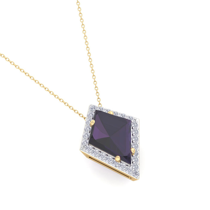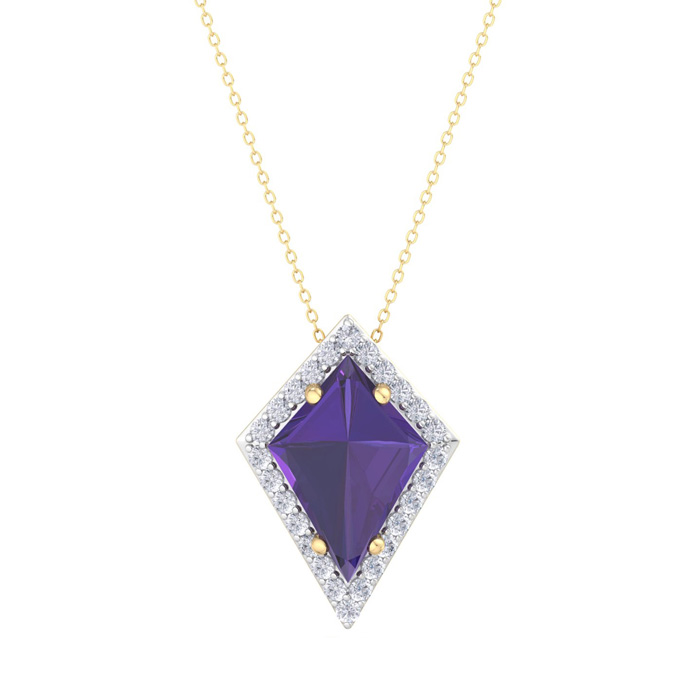 1 3/4 Carat Kite Shape Amethyst and Diamond Necklace In 14K Yellow Gold