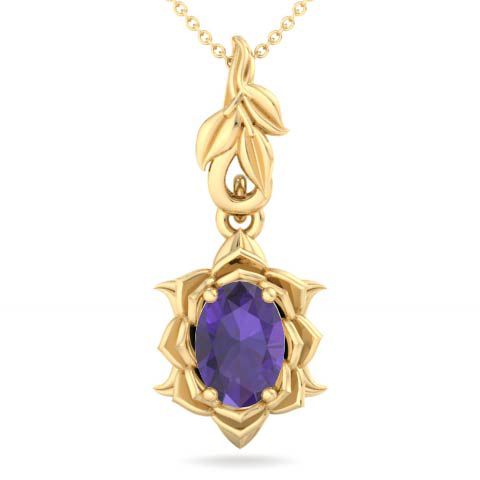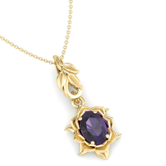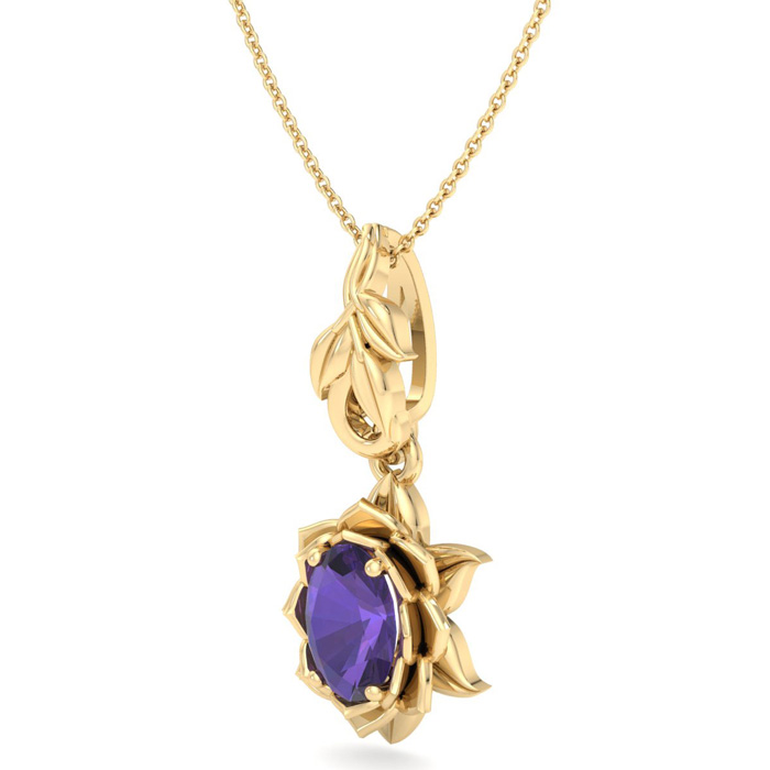 3/4 Carat Oval Shape Amethyst Ornate Necklace In 14K Yellow Gold
