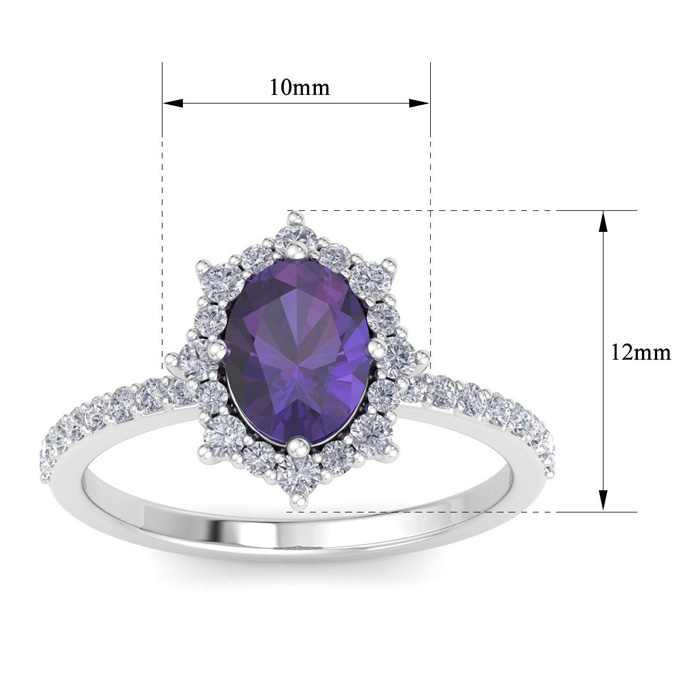 Retrograde Birthstones™ 1 1/2 Carat Oval Shape Amethyst and Diamond Ring In 14K White Gold