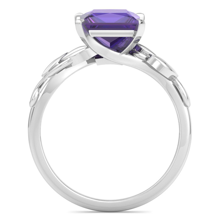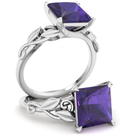 1 1/2 Carat Princess Shape Amethyst Ornate Ring In 14K White Gold