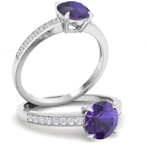 1 1/4 Carat Amethyst and Diamond Ring In 14K White Gold