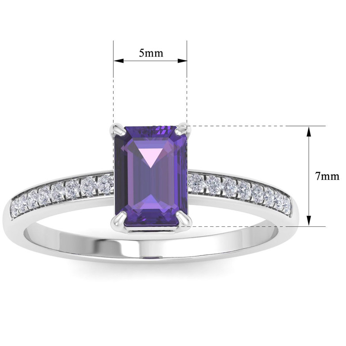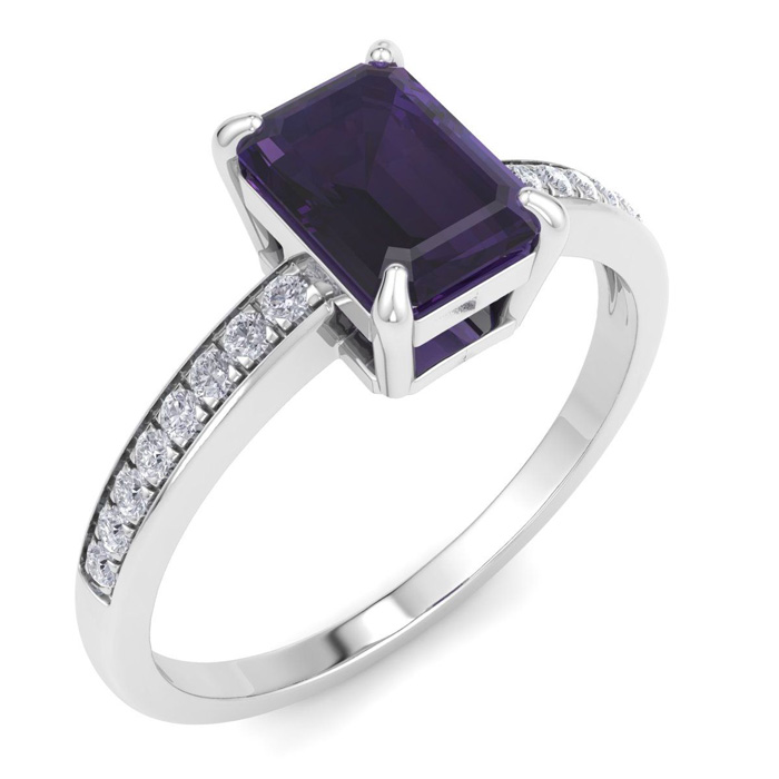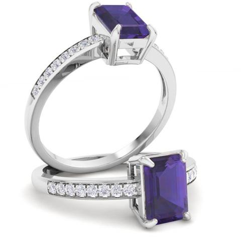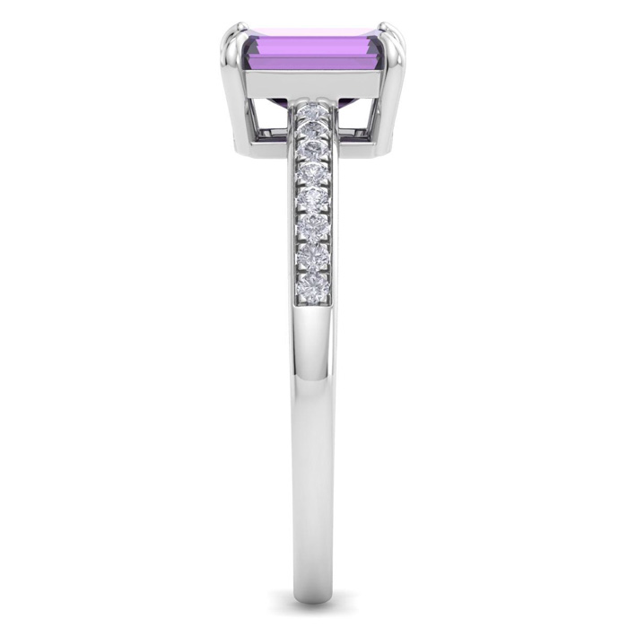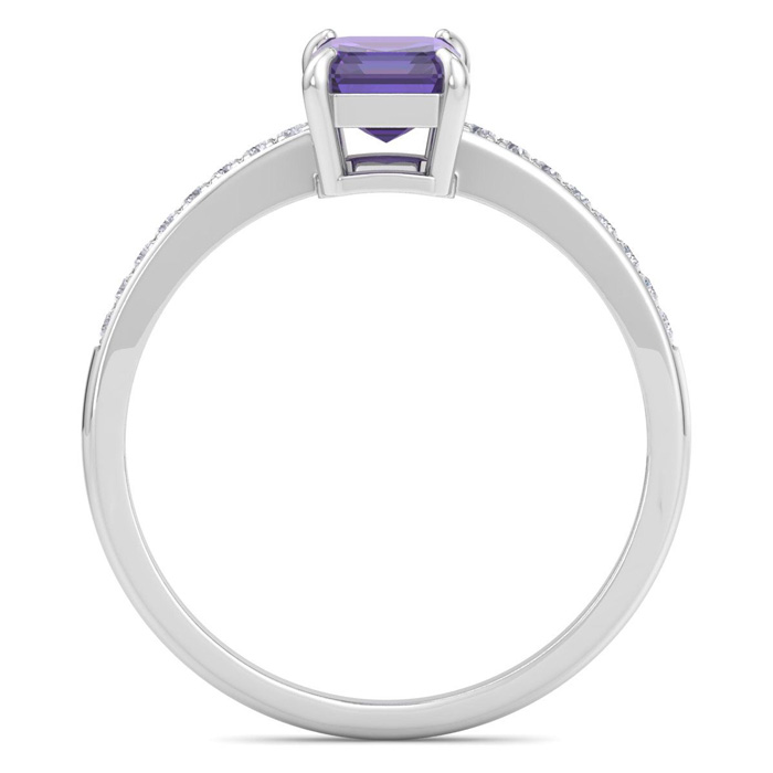 1 1/4 Carat Emerald Cut Amethyst and Diamond Ring In 14K White Gold