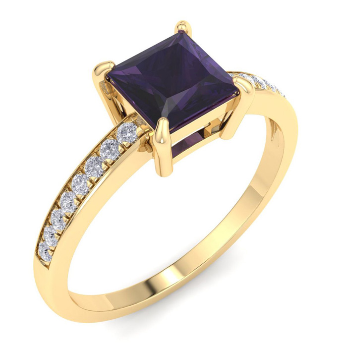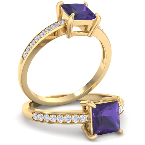 1 1/4 Carat Princess Cut Amethyst and Diamond Ring In 14K Yellow Gold