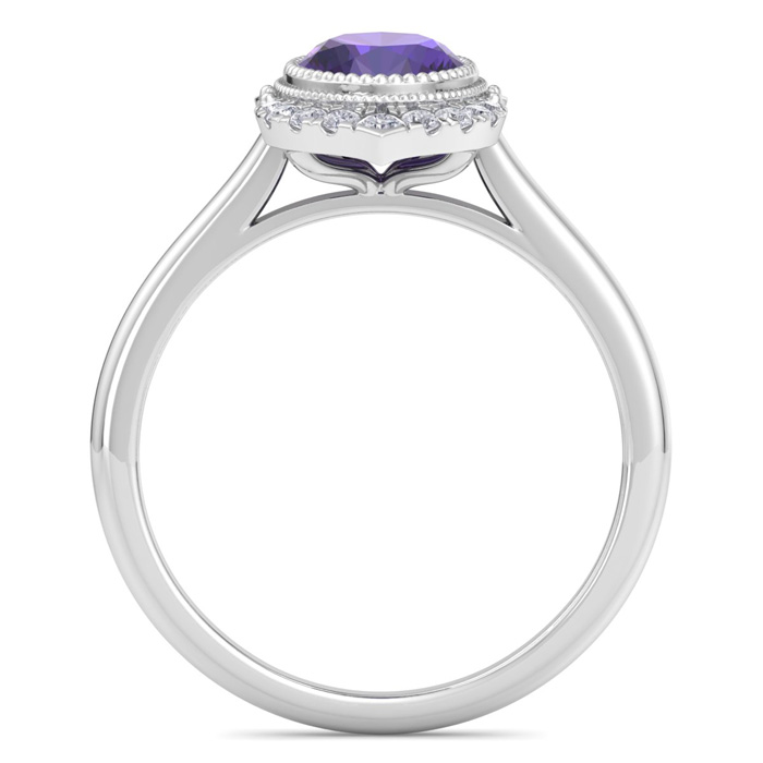 1 1/5 Carat Oval Shape Amethyst and Diamond Ring In 14K White Gold