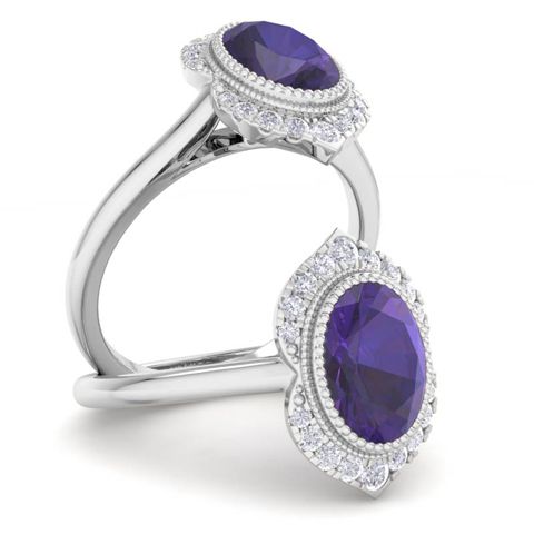 1 1/5 Carat Oval Shape Amethyst and Diamond Ring In 14K White Gold