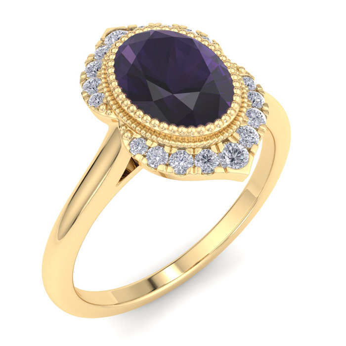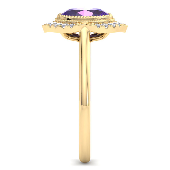 1 1/5 Carat Oval Shape Amethyst and Diamond Ring In 14K Yellow Gold