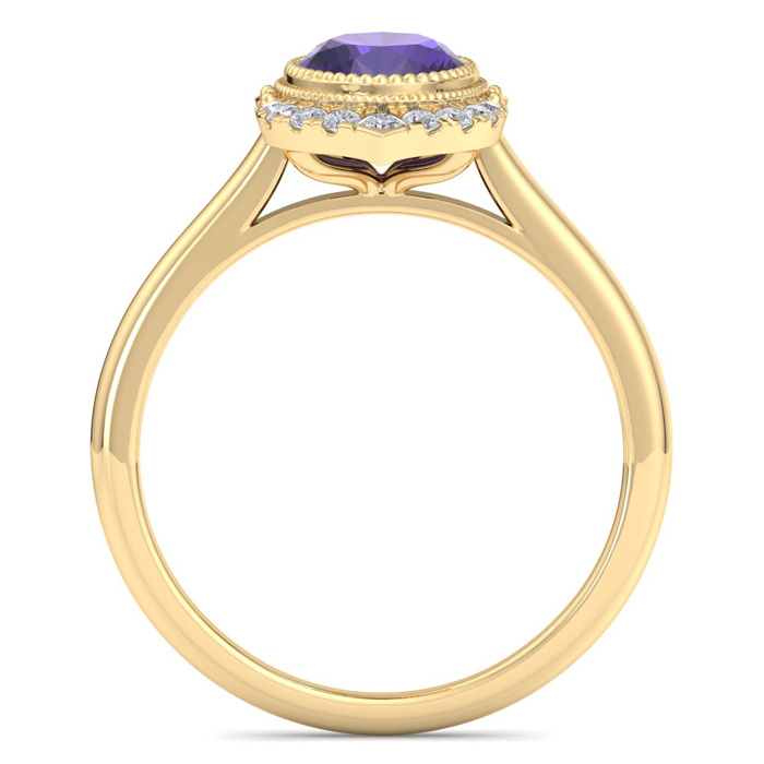 Retrograde Birthstones™ 1 1/5 Carat Oval Shape Amethyst and Diamond Ring In 14K Yellow Gold