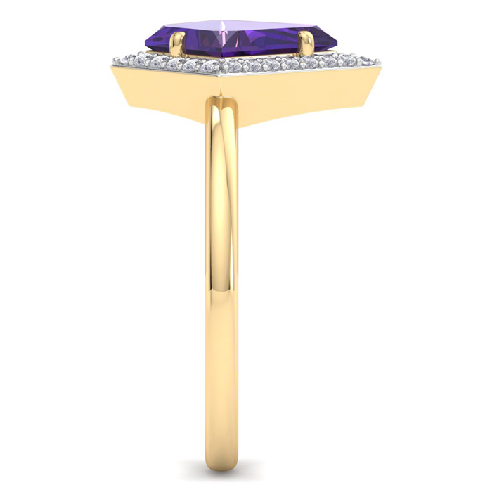 1 3/4 Carat Kite Shape Amethyst and Diamond Ring In 14K Yellow Gold
