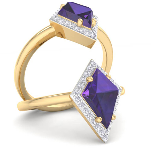 1 3/4 Carat Kite Shape Amethyst and Diamond Ring In 14K Yellow Gold