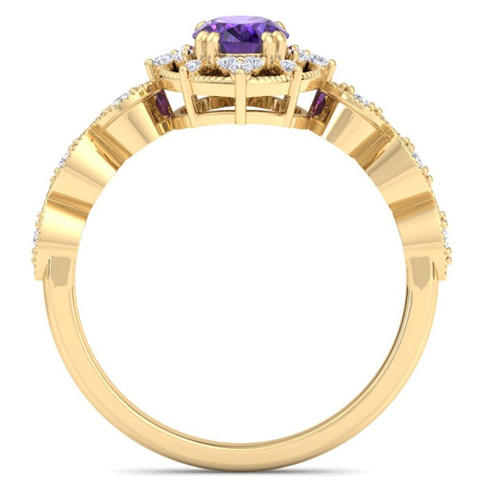 1 Carat Amethyst and Halo Diamond Ring In 14K Yellow Gold