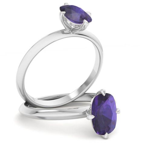 This gemstone ring features one 7x5mm antique cushion shape amethyst gemstone weighing approximately 1 carat. This ring is in 14 karat white gold.