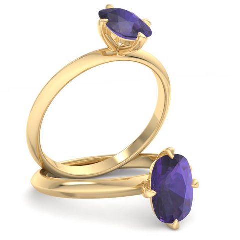 This gemstone ring features one 7x5mm antique cushion shape amethyst gemstone weighing approximately 1 carat. This ring is in 14 karat yellow gold.