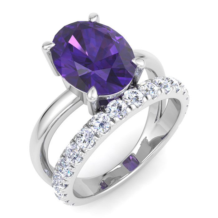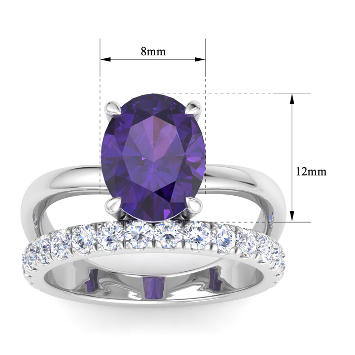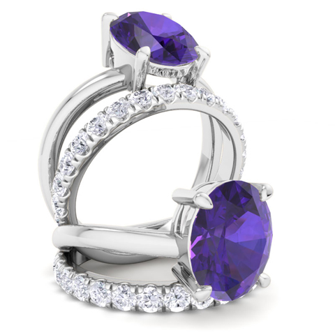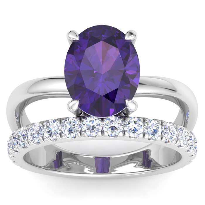 2 3/4 Carat Oval Shape Amethyst and Halo Diamond Ring Plus Band In 14 Karat White Gold