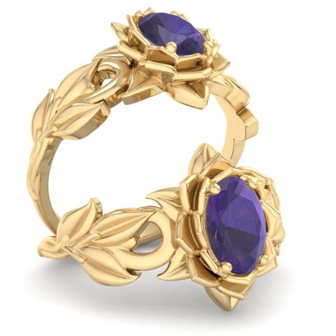 3/4 Carat Oval Shape Amethyst Ornate Ring In 14K Yellow Gold