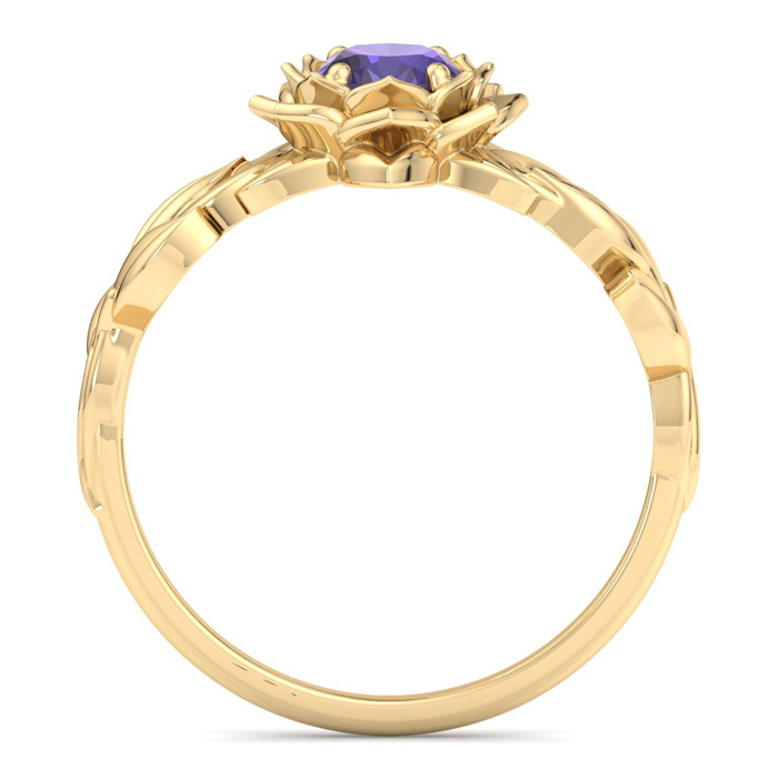 Retrograde Birthstones™ 3/4 Carat Oval Shape Amethyst Ornate Ring In 14K Yellow Gold