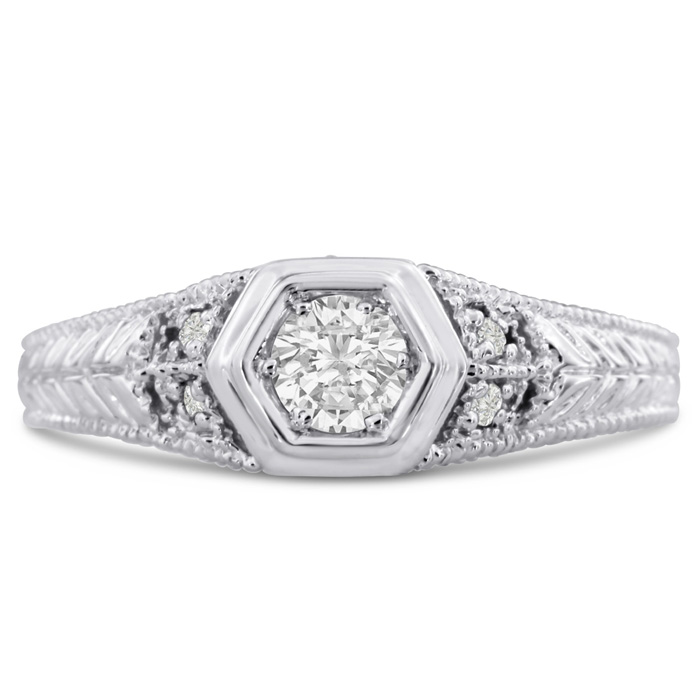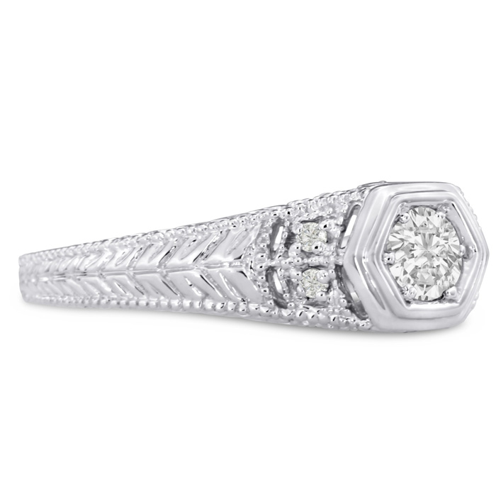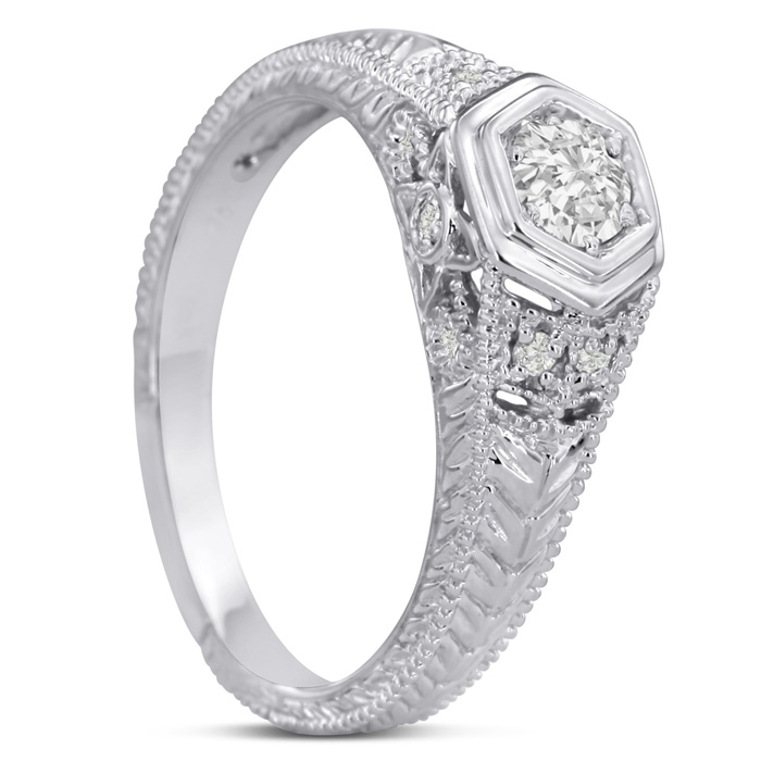 Antique 1/3 Carat Natural Diamond Engagement Ring In 14 Karat White Gold