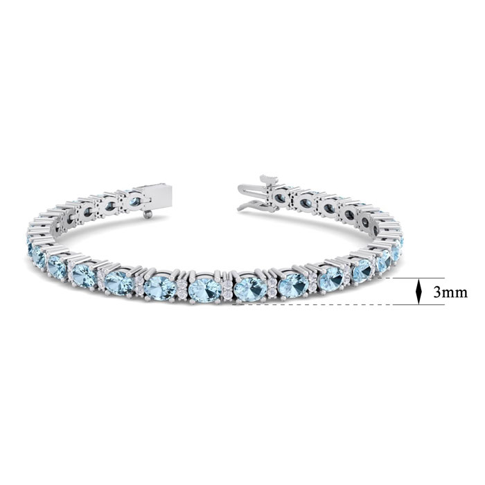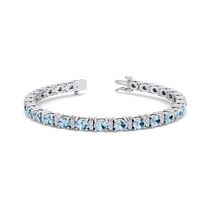 5 Carat Oval Shape Aquamarine and Diamond Bracelet In 14 Karat White Gold, 7 Inches