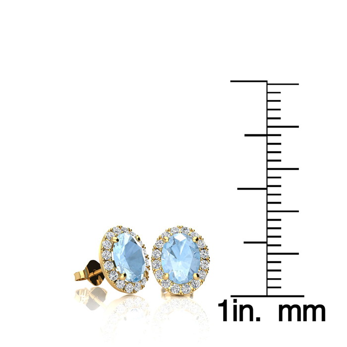 1 Carat Oval Shape Aquamarine and Halo Diamond Stud Earrings In 14 Karat Yellow Gold