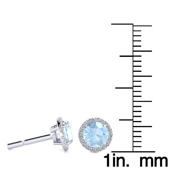 1 Carat Round Shape Aquamarine and Halo Diamond Earrings In 14 Karat White Gold