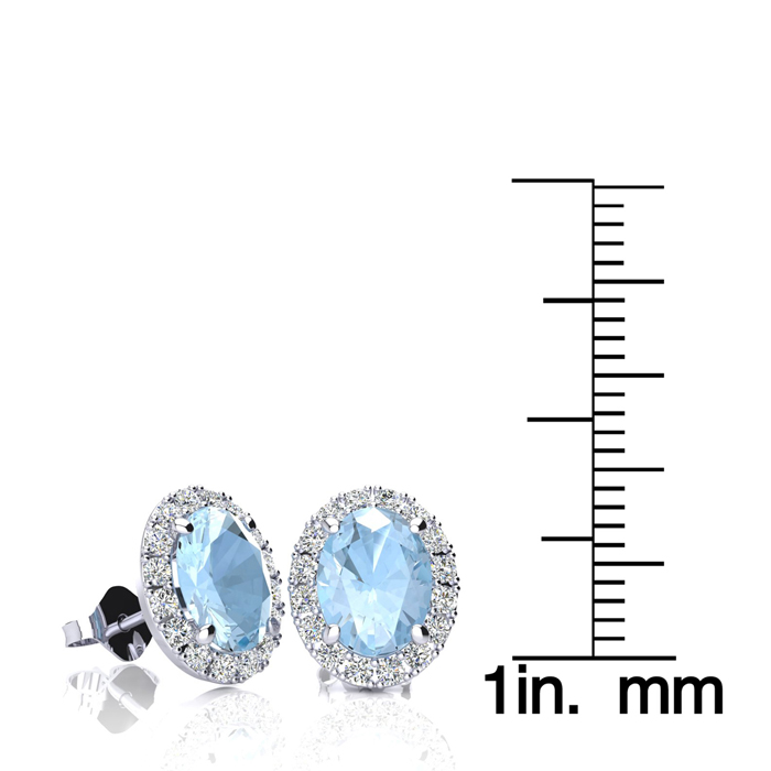 2 1/2 Carat Oval Shape Aquamarine and Halo Diamond Stud Earrings In 14 Karat White Gold
