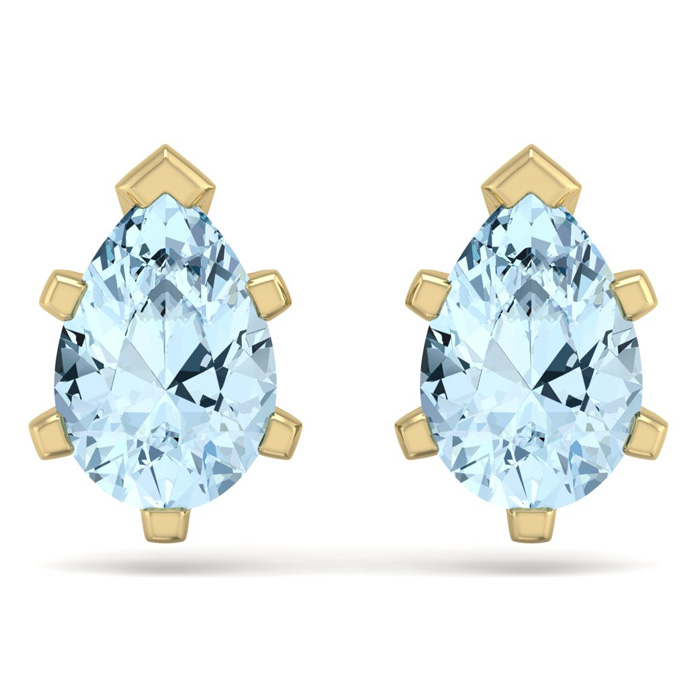 2 1/3 Carat Pear Shape Aquamarine Stud Earrings In 14K Yellow Gold Over Sterling Silver