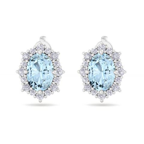 2 Carat Oval Shape Aquamarine and Diamond Earrings In 14K White Gold