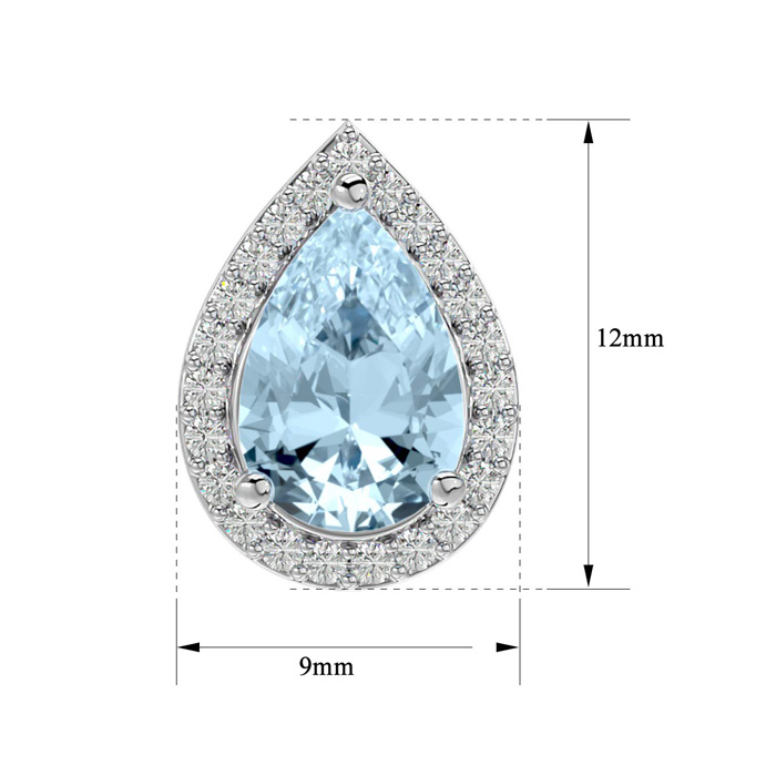 These stunning aquamarine earrings features two 9x6mm pear shape aquamarine gemstones each weighing approximately 1 1/3 carats. It is surrounded by 48 sparkling diamonds in I-J color, I1-I2 clarity at 1/4 carat. Total carat weight is 3 carats. These earrings are crafted in sterling silver and have comfortable and secure post with friction backs. *Retrograde Birthstones™ flips the idea of traditional birthstones. Wear your ½ birthday birthstone, your Retrograde Birthstone, “The Birthstone For Your Bad Side™.