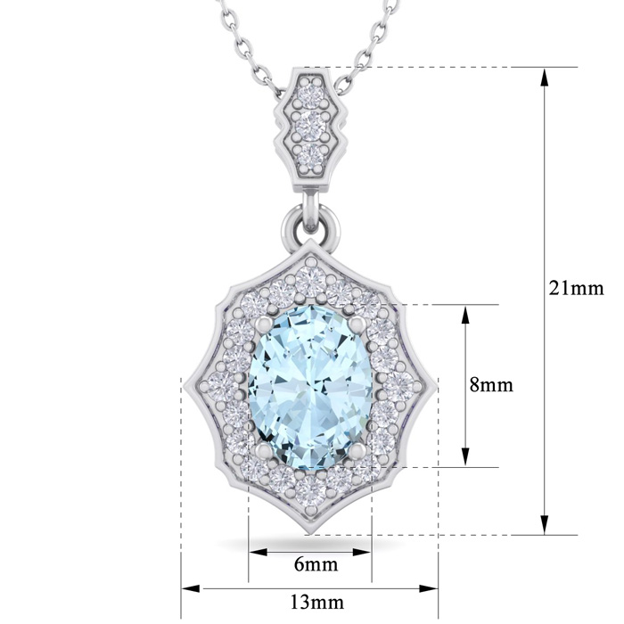 1 1/2 Carat Oval Shape Aquamarine and Diamond Necklace In 14 Karat White Gold, 18 Inches