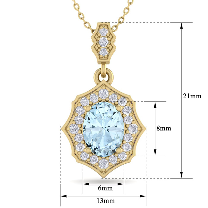 This elegant gemstone necklace features one 8x6mm oval shape aquamarine gemstone at approximately 1.15 carats. It is surrounded by 23 sparkling diamonds in I-J color, I1-I2 clarity at 1/4 carat total weight. Total gem weight is approximately 1.40 carat total weight. This necklace is in 14 karat yellow gold and comes with an 18 inch cable chain with a spring ring clasp. The pendant is approximately 3/4 inch long. *Retrograde Birthstones™ flips the idea of traditional birthstones. Wear your ½ birthday birthstone, your Retrograde Birthstone, “The Birthstone For Your Bad Side™.