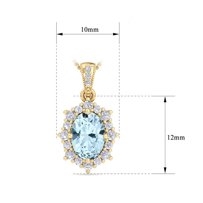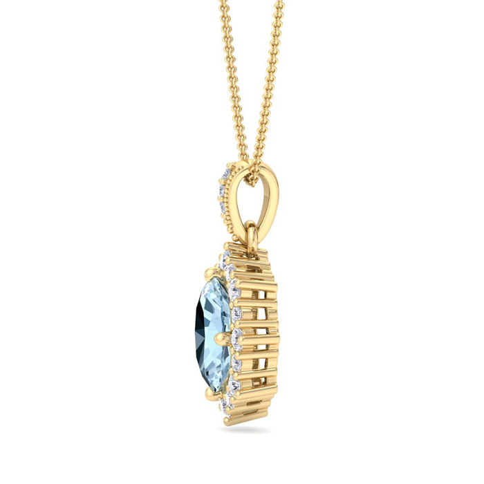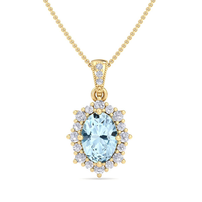 Retrograde Birthstones™ 1 1/3 Carat Oval Shape Aquamarine and Diamond Necklace In 14K Yellow Gold