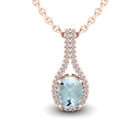 1 1/3 Carat Oval Shape Aquamarine and Diamond Necklace In 14K Yellow Gold$797.97 CODE SAVEBIG
