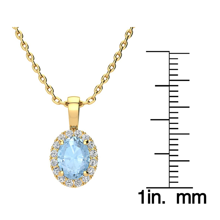 1 1/3 Carat Oval Shape Aquamarine and Halo Diamond Necklace In 14 Karat Yellow Gold With 18 Inch Chain