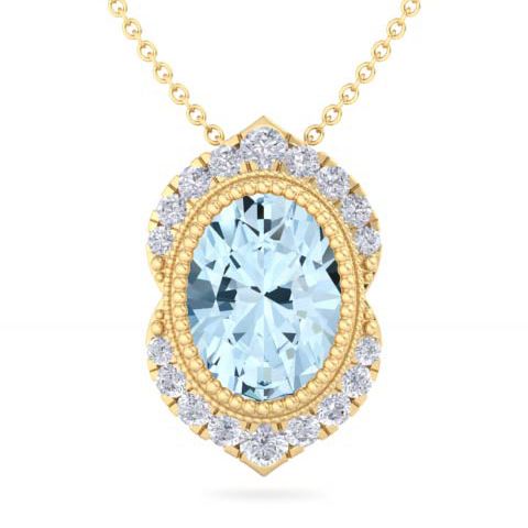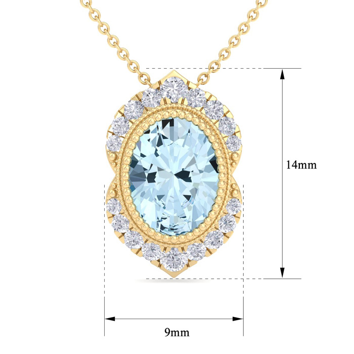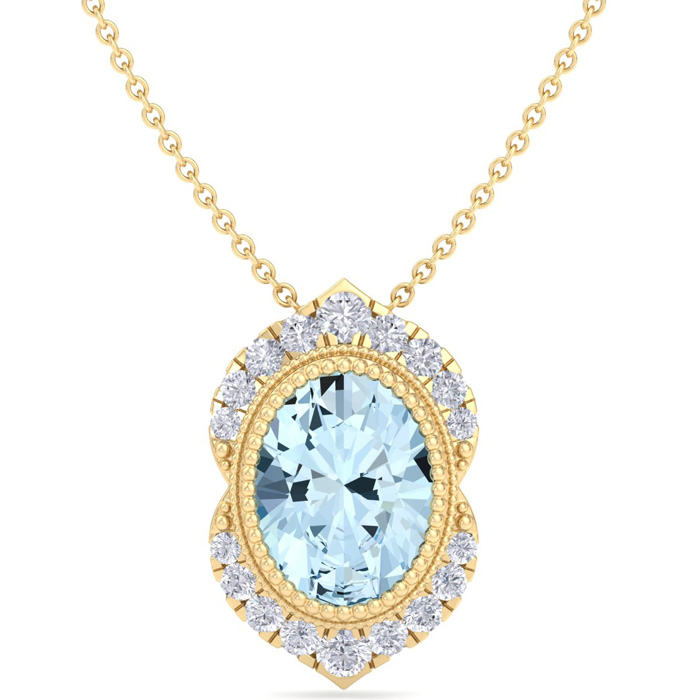 1 1/5 Carat Oval Shape Aquamarine and Diamond Necklace In 14K Yellow Gold